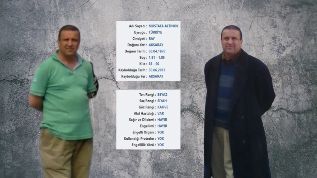Aksaray’da yaşayan Mustafa Altınok, 30 Haziran 2017’de evinden ayrıldıktan sonra bir daha haber alınamadı. Ailesi durumu 112 Acil Servis ekiplerine bildirdi. Aradan geçen 8 yılı aşkın süreye rağmen Altınok’tan bir emareye ise ulaşılamadı. Sevenlerinin umutlu bekleyişi ise hala devam ediyor.