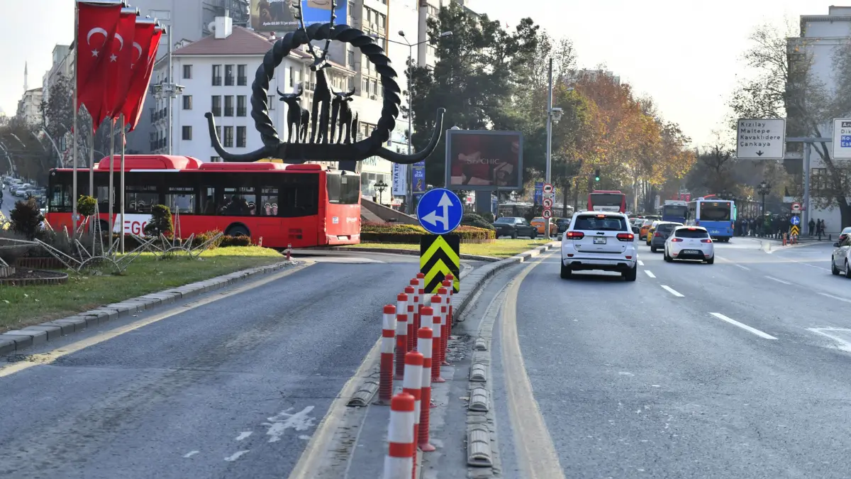 Ankara Büyükşehir Belediyesi, trafikte yaşanan kaynak sorununa karşı yaşanan sıkıntıların önüne geçmek amacıyla belirlenen 35 noktada delinatör çalışması yaptı.