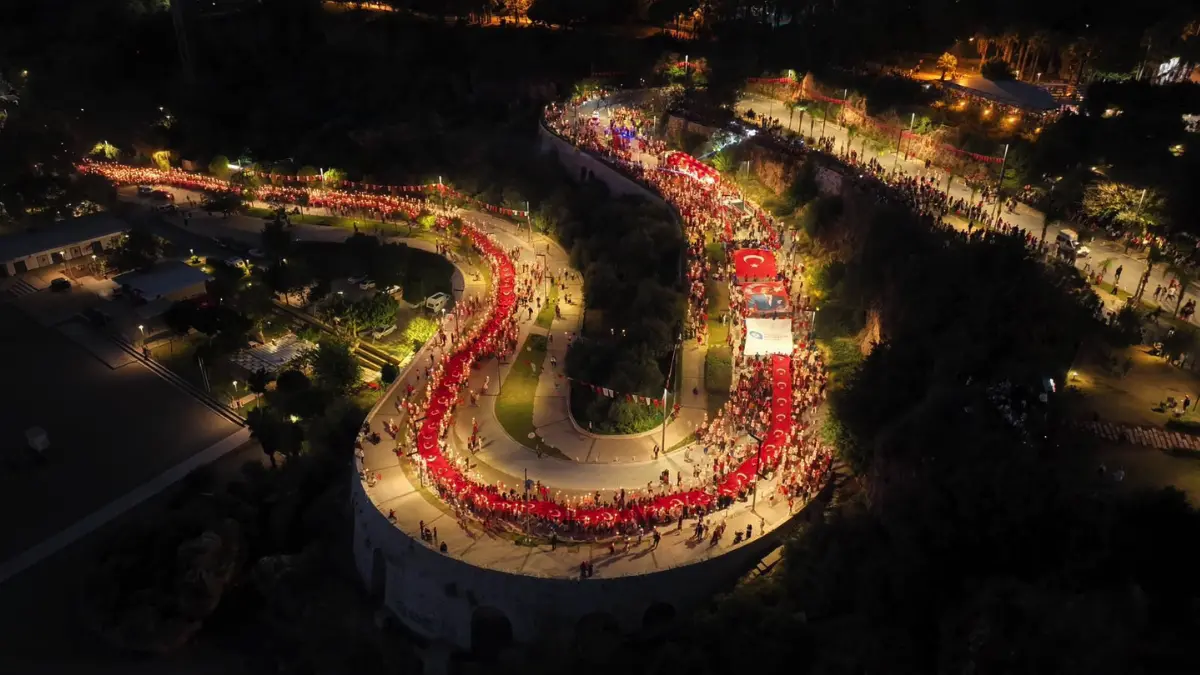 On binlerce Antalyalı 29 Ekim Cumhuriyet Bayramı’nı coşkuyla kutladı. Antalya Büyükşehir Belediyesi tarafından Cumhuriyet Bayramı kutlamaları kapsamında düzenlenen fener alayı büyük bir coşkuyla gerçekleşti. Konyaaltı Varyant’tan başlayan ve Cumhuriyet Meydanı’na kadar süren kilometrelerce uzunluktaki fener alayına her yaştan on binlerce Antalyalı katıldı. Ellerinde meşale ve Türk bayraklarıyla yürüyen Antalyalılar Cumhuriyetin 102. yılını gururla ve coşkuyla kutladı.