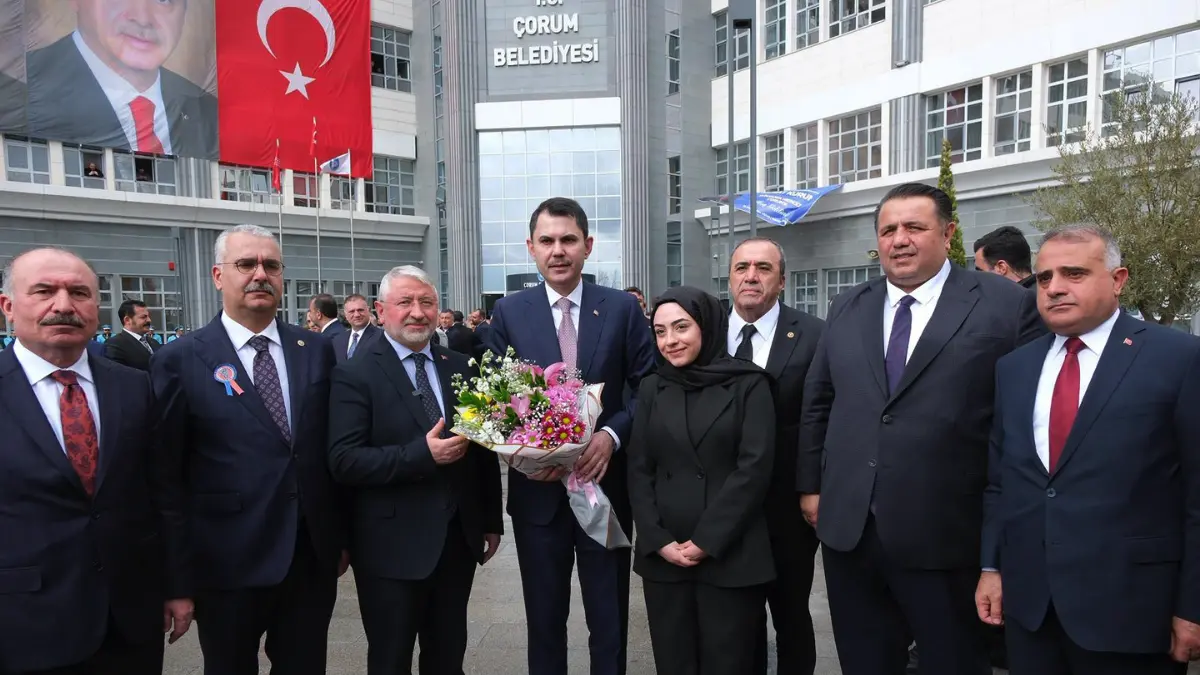 Türkiye genelinde devam eden Yüzyılın Konut Projesi’ne dair önemli görüşmeler yapan Çevre Şehircilik ve İklim Değişikliği Bakanı Murat Kurum’un yeni adresi Çorum oldu. Çorum Belediyesi’ni ziyaret eden Bakan Kurum, belediye önünde bando takımı tarafından karşılandı.