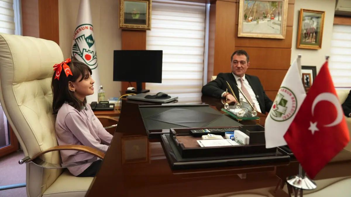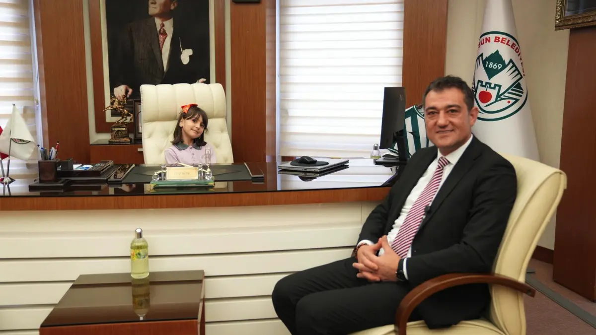 Giresun Belediye Başkanı Fuat Köse, 23 Nisan Ulusal Egemenlik ve Çocuk Bayramı kapsamında başkanlık koltuğunu minik öğrencilere devretti.