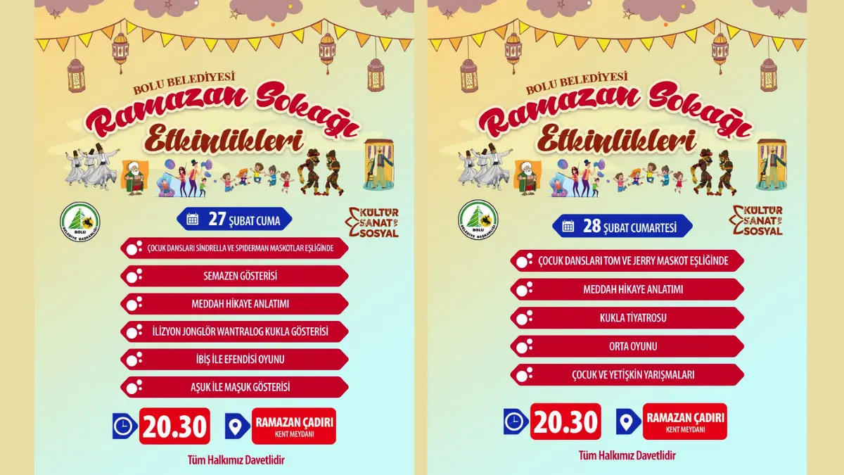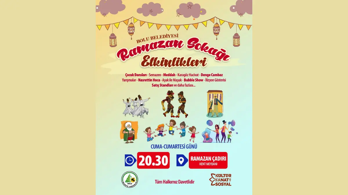 Ramazan etkinliklerinin, yine Kent Meydanı’nda kurulan Ramazan Çadırı’nda gerçekleştirileceği açıklandı. Başkan Özcan, sosyal medya hesabından yaptığı paylaşımda Bolululara seslenerek şu ifadeleri kullandı: “Biliyorum… Ramazan etkinliklerimizi 7’den 70’e hepiniz çok sevdiniz. Ancak olumsuz hava şartları nedeniyle bu haftaki etkinliklerimizi Kent Meydanı yerine Ramazan Çadırımızda gerçekleştireceğiz. Ramazan’ın neşesini, bereketini ve o güzel birlik ruhunu hep birlikte yaşamak için Cuma ve Cumartesi akşamı saat 20.30’da İftar Çadırımıza hepinizi bekliyorum.”