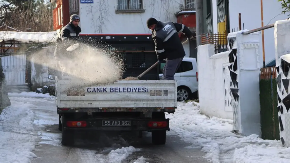 Canik Belediyesi, vatandaşların ulaşımda aksama yaşamaması için buzlanma ve don olaylarına karşı solüsyon uygulama, tuzlama ve kar küreme çalışmalarını sürdürüyor.