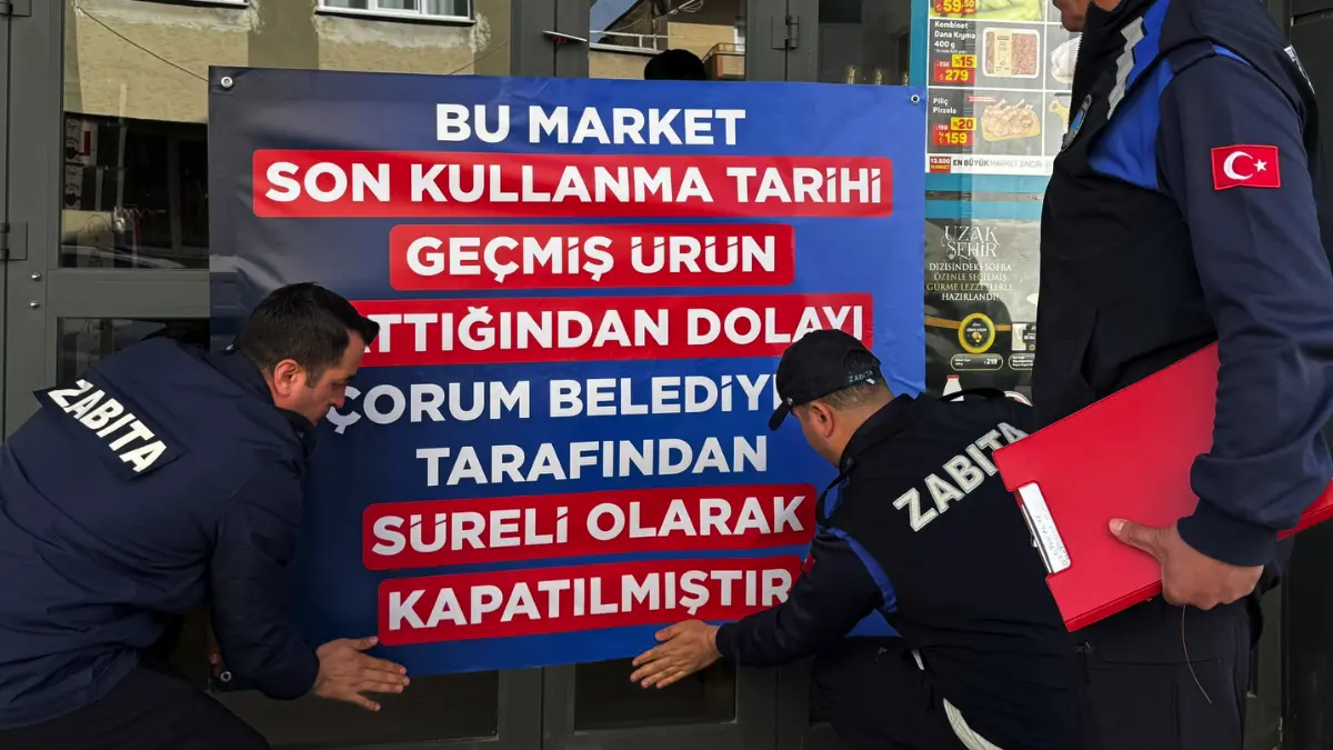 Zabıta ekipleri, kararın tebliğinin ardından iş yerini mühürleyerek kapatma işlemini gerçekleştirdi ve market girişine, “Bu market son kullanma tarihi geçmiş ürün sattığından dolayı Çorum Belediyesi tarafından süreli olarak kapatılmıştır” yazılı bilgilendirme afişi astı.