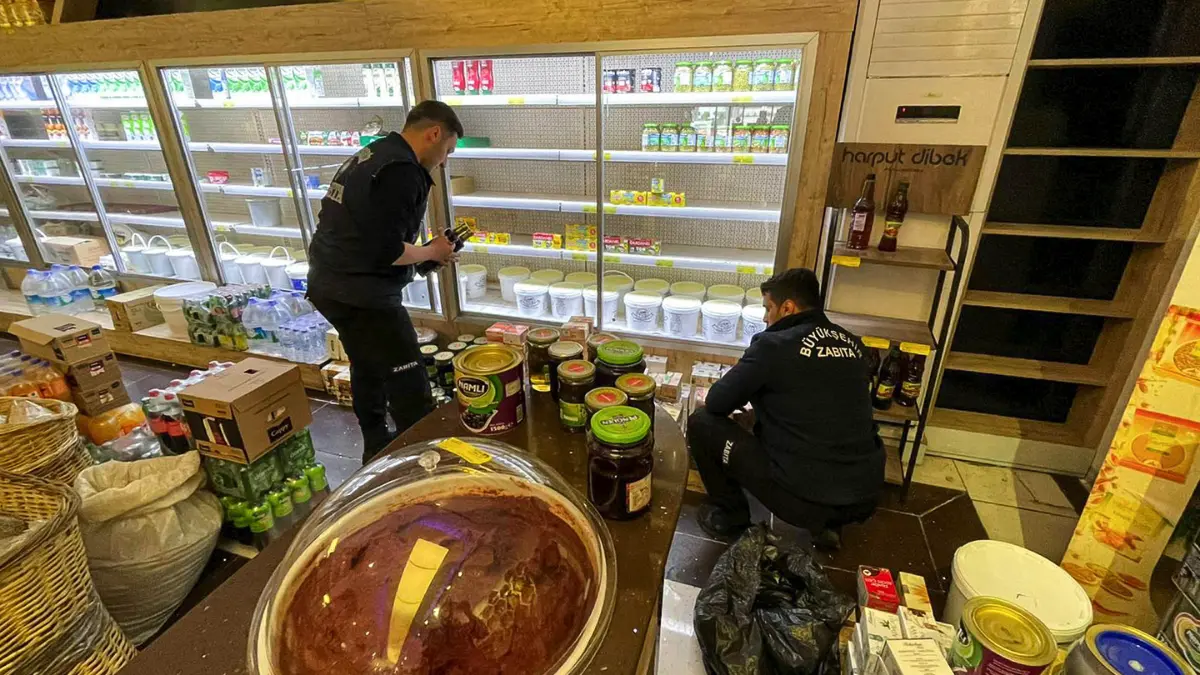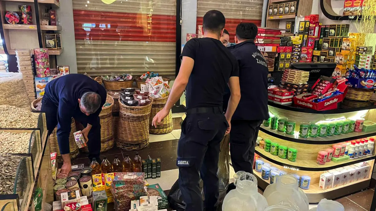 Zabıta ve Sağlık İşleri daire başkanlıkları tarafından yapılan denetimlerde, gıda satışı yapılan bir iş yerinde son tüketim tarihi geçmiş ürünlerin satışa sunulduğu tespit edildi. 6502 sayılı Tüketicinin Korunması Hakkında Kanun kapsamında değerlendirilen denetimlerde, mevzuata aykırı şekilde raflarda bulundurulan ürünler tek tek incelendi.