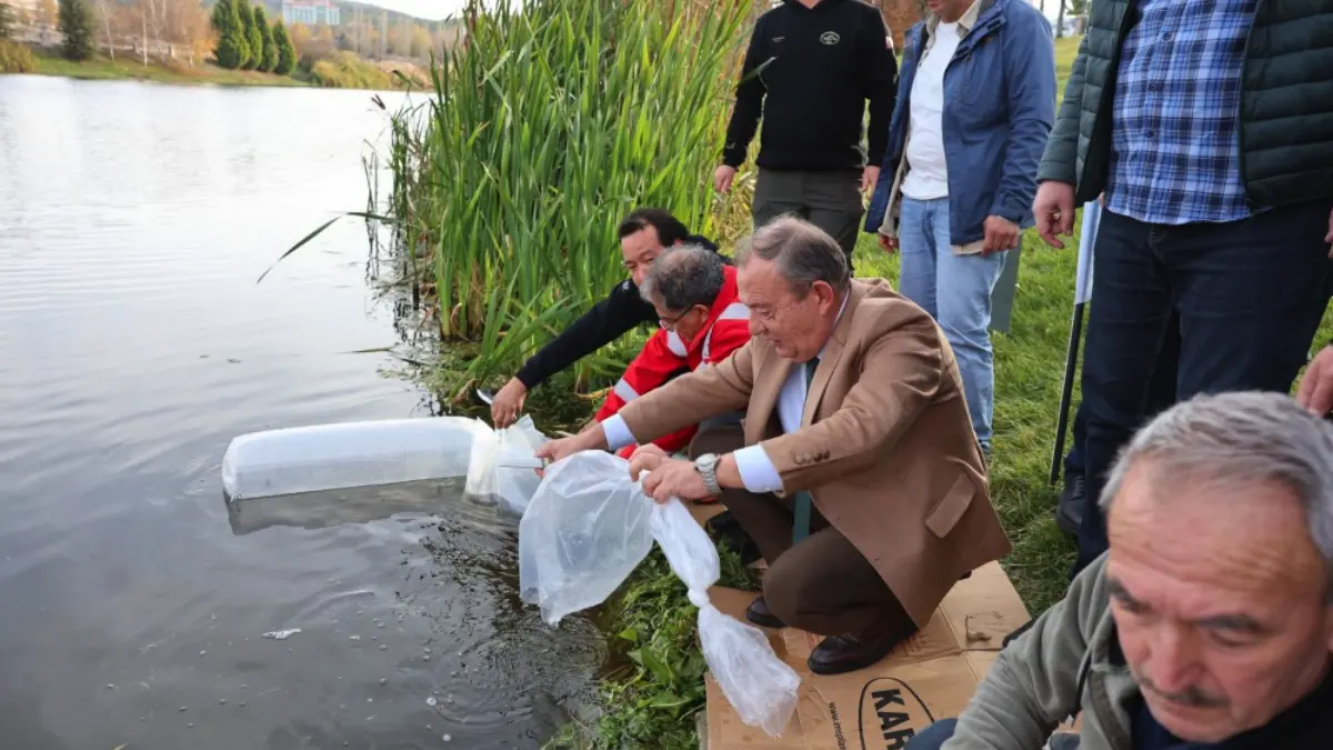 Doğaya bırakılan 5 bin aynalı sazanla, Porsuk Çayı’ndaki balık popülasyonunun güçlendirilmesi ve bölgedeki ekosistemin desteklenmesi hedefleniyor.