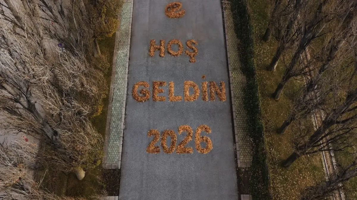 Eskişehir Büyükşehir Belediyesi Park ve Bahçeler Dairesi Başkanlığı ekipleri, kavak ağaçlarından dökülen binlerce sarı yaprağı titizlikle toplayarak yeşilliklerin ortasına dev bir “Hoş geldin 2026” yazısı oluşturdu. Parkı ziyaret eden vatandaşlar, doğanın kendi dokusundan hazırlanan bu özel çalışmaya büyük ilgi gösterdi.