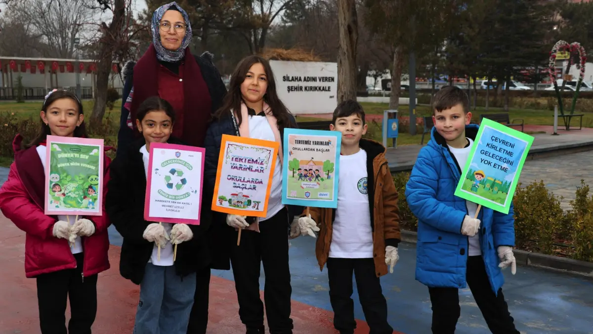 Kırıkkale’de Mehmet Uzelli İlkokulu öğrencileri, çevre duyarlılığı konusunda farkındalık oluşturmak amacıyla Büyük Şehir Parkı’nda çevre temizliği etkinliği gerçekleştirdi.