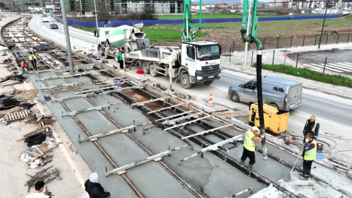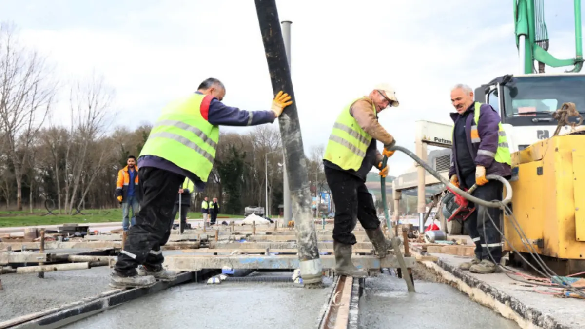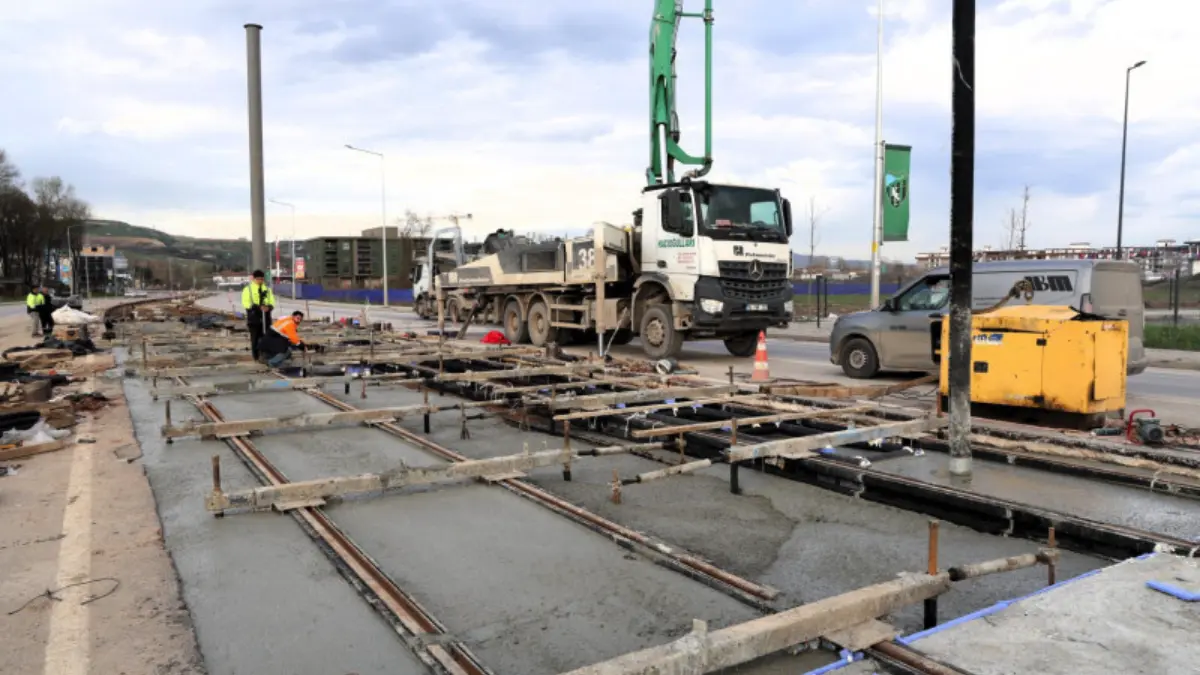Kocaeli Büyükşehir Belediyesi, İzmit’ten Kartepe’ye uzanan 1,4 kilometrelik yeni tramvay hattında beton dökme işlemlerini tüm hızıyla sürdürüyor.