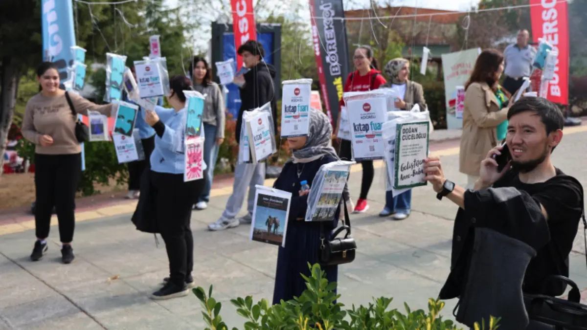 Kocaeli Büyükşehir Belediyesi’nce düzenlenen 15. Kocaeli Kitap Fuarı öncesinde, ağaçlara asılan bin kitap, öğrenciler ve öğretim üyeleri tarafından toplandı.