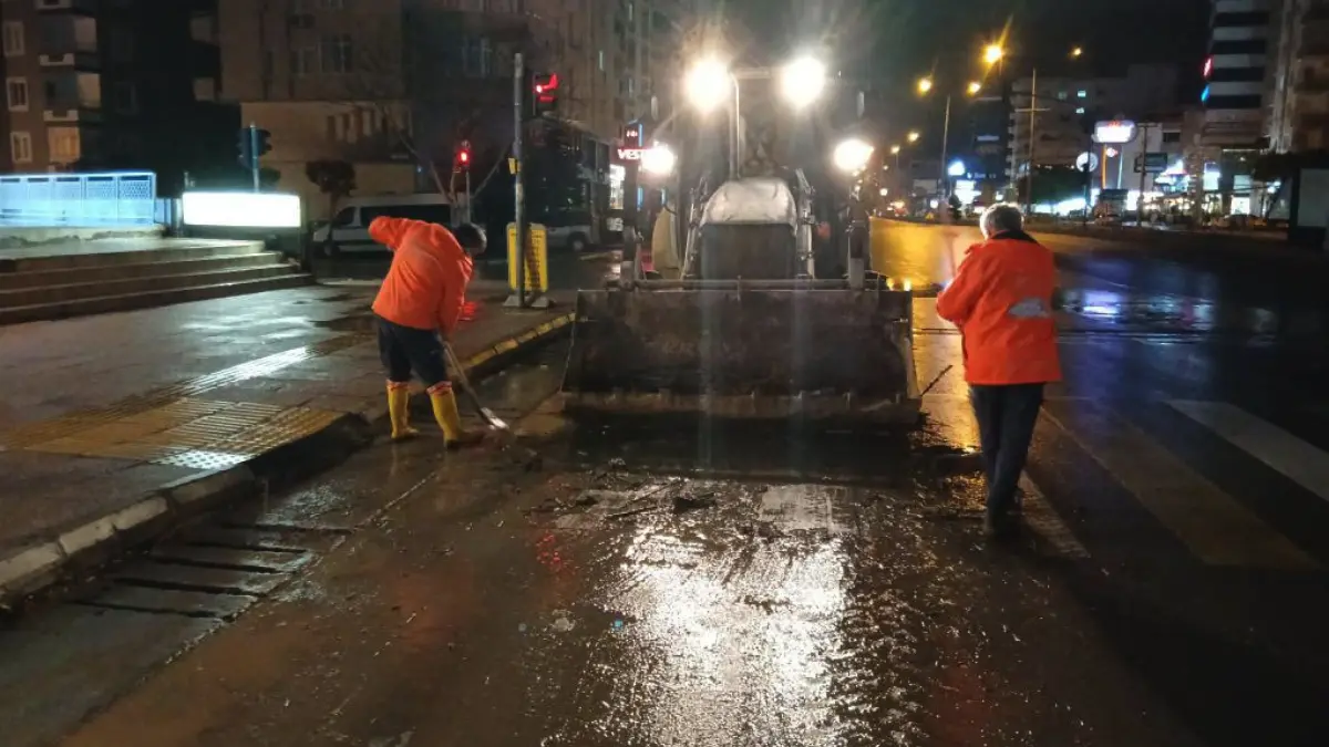 Yağışın ardından yapılan temizlik çalışmaları devam ederken, ulaşımın aksamaması ve vatandaşların günlük yaşamının olumsuz etkilenmemesi için tüm ekipler etkin biçimde sahada görev aldı. Farklı noktalarda yaşanan taşkınlarda vatandaşların can ve mal güvenliğini korumak için canla başla görev yapılmasının ardından taşma sonucu şiddetli yüzey akıntısıyla sürüklenen çakıl ve odun atıklarını temizleyen Çevre Koruma ve Kontrol Dairesi Başkanlığı ekipleri günlük yaşamın olumsuz etkilenmemesi adına çalışmalarını gece boyunca sürdürdü.