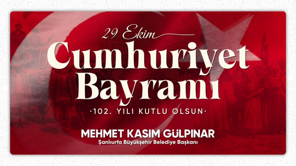 Şanlıurfa Büyükşehir Belediye Başkanı Mehmet Kasım Gülpınar, Cumhuriyet’in ilanının 102. yıl dönümü dolayısıyla bir kutlama mesajı yayımladı.