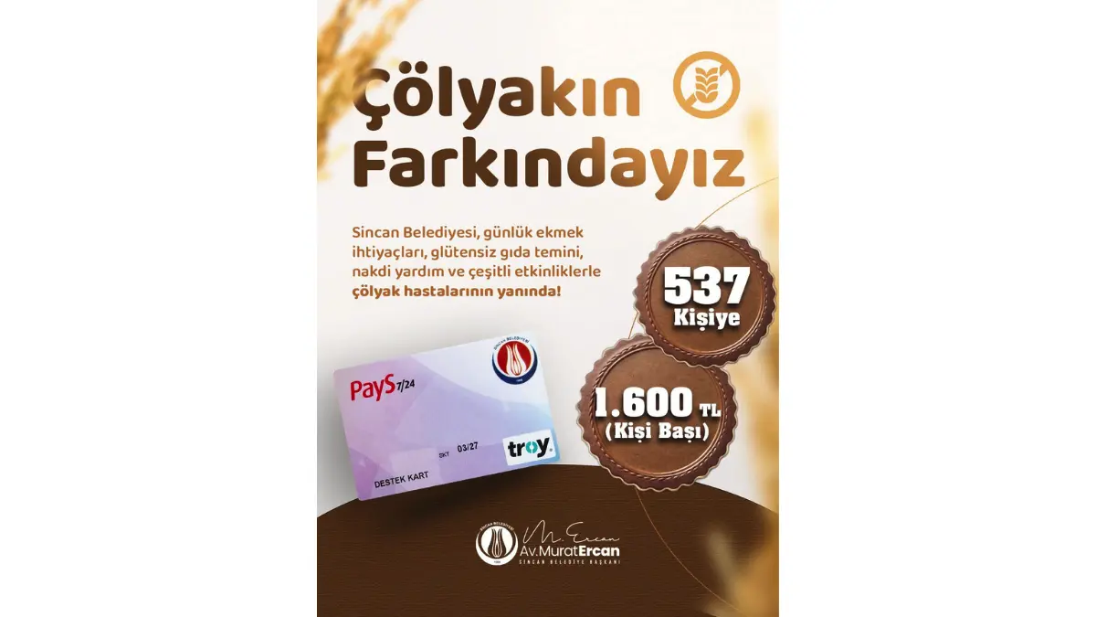 Türkiye’de glütensiz gıdalara ulaşmanın zorluğu ve yüksek maliyetleri nedeniyle sağlıklı beslenmede güçlük çeken çölyak hastalarına Sincan Belediyesi’nin desteği sürüyor. Sincan Belediye Başkanı Murat Ercan, üç ayda bir destek ödemesi yapıldığını söyleyerek, çölyaklı vatandaşların her zaman yanında olduklarını ifade etti.