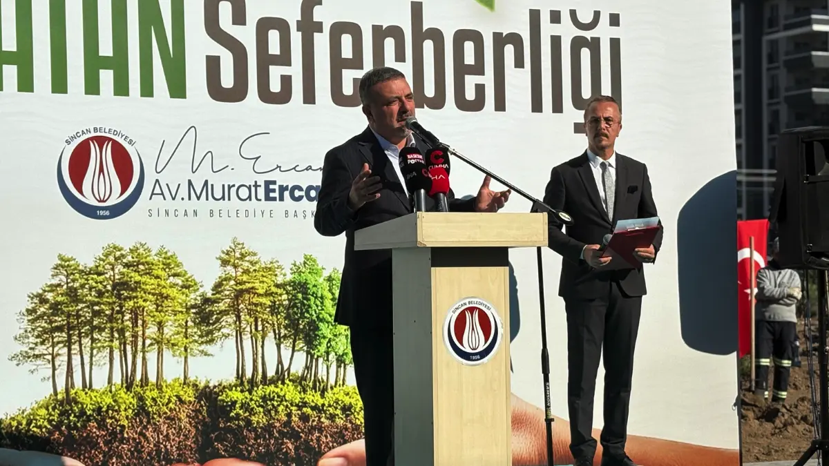 Sincan Belediye Başkanı Murat Ercan etkinlikte yaptığı konuşmada, “Ağaç bizim kültürümüzde çok daha derin anlamlar ifade ediyor. Peygamber Efendimiz ‘Kıyamet kopacağını da bilseniz elinizde bir fidan varsa onu dikin’ diyor. 1400 yıl önce söylenmiş bir hadis. Bizim bu kadim medeniyetimizden gelen mirasa, en güzel şekilde sahip çıkmamız lazım. Hamdolsun Sincan’da iyi bir noktadayız. Kişi başına düşen yeşil miktarında kolay kolay yanımıza kimse yaklaşamaz. Avrupa standartlarının da üstündeyiz. 453 tane parkımız 56 adet fidanlığımız var. Durmak yok bunu da çıkarabileceğimiz kadar daha da yükseğe çıkaracağız.” dedi.