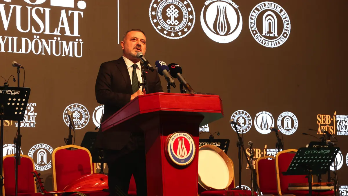 Programın açılış konuşmasını yapan Sincan Belediye Başkanı Murat Ercan: “Gönül ikliminin sultanlarından birisi de Hz. Mevlana. Vuslatının 752’nci yılında anıyoruz. O ölüm yıl dönümünde benim arkamdan yas tutun demiyor, sevinin, yüceler yücesine en sevgiliye gidiyorum diyor. Bu coğrafyanın Türkleşmesinde, İslamlaşmasında yüce insanların çok büyük rolleri var. Hz. Mevlana gibi, Ahi Evran gibi, Hacı Bektaş-ı Veli gibi gönül sultanları var. Bu topraklara güzel ahlakı öğretenler onlar. Bu toprakları İslamlaştıran ve bütün dünyanın gıpta ile baktığı yüce bir millet mirası ortaya koyanlar işte bu mübarek insanlar. Biz onları asla unutturmayacağız. Bu çivisi çıkmış dünyanın ilacı biziz. Bunu da değerlerimizi unutmayarak, rehberlerimizden beslenerek yapacağız. Biz bunu bileceğiz, evlatlarımıza bizden sonraki nesillere de öğreteceğiz inşallah.” ifadesinde bulundu.