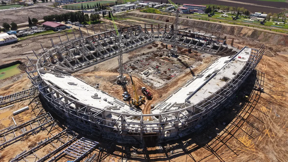 Büyükşehir Belediyesi ile ilgili bakanlıkların iş birliğinde hayata geçirilen projeler arasında en dikkat çeken yatırımlardan biri olan yeni stadyumun inşaatı, planlanan takvim doğrultusunda hızlı bir şekilde ilerliyor. Dulkadiroğlu İstasyon Mahallesi’nde yükselen stadyumda kaba inşaat çalışmalarında sona yaklaşıldı. 2 milyar TL’lik dev yatırımla hayata geçirilen projede, taşıyıcı sistemler büyük ölçüde tamamlanırken, ekipler eş zamanlı olarak çelik ve çatı imalatlarını gerçekleştiriyor. Üstyapı ve ince işçilik aşamasına geçilmeden önce projede son hazırlıklar titizlikle sürdürülüyor.